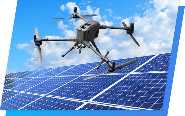 赤外線カメラを搭載したドローンで、上空から太陽光パネルを撮影します。